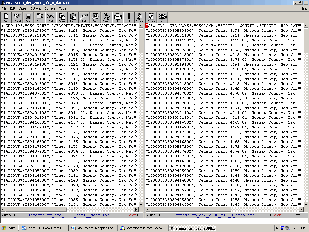 Normalize Census Data:Owing to differences in the format between the two Decennial censuses, it was necessary to ignore a small amount of data where tract ids had no ccrresponding records. Using unix editing tools the data files were then edited to create a one-to-one relationship of tract ids between censuses.